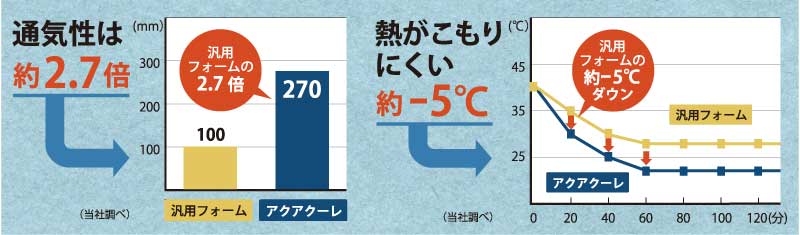 中材に通気性に優れた新素材ウレタンフォーム「アクアクーレ」を使用。